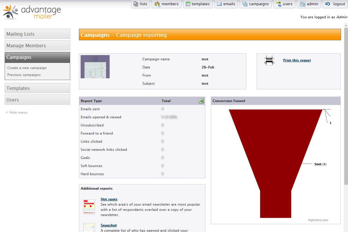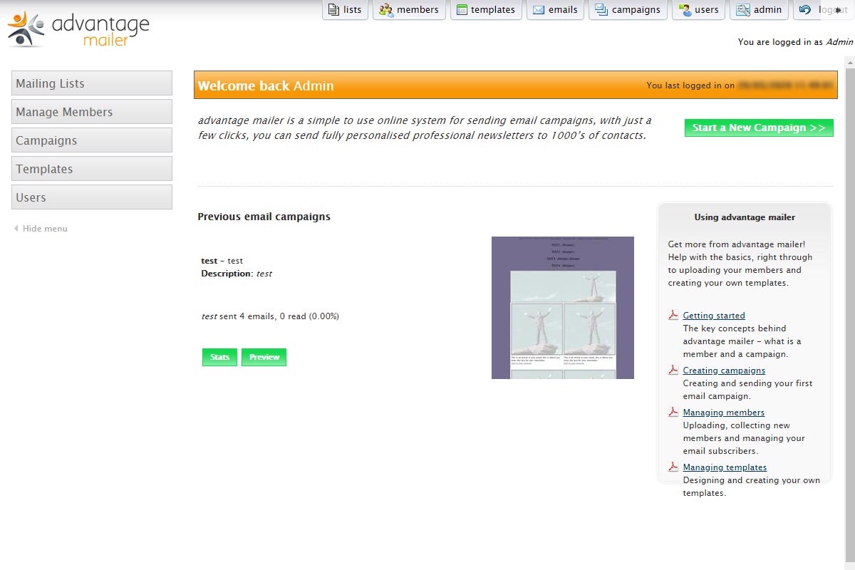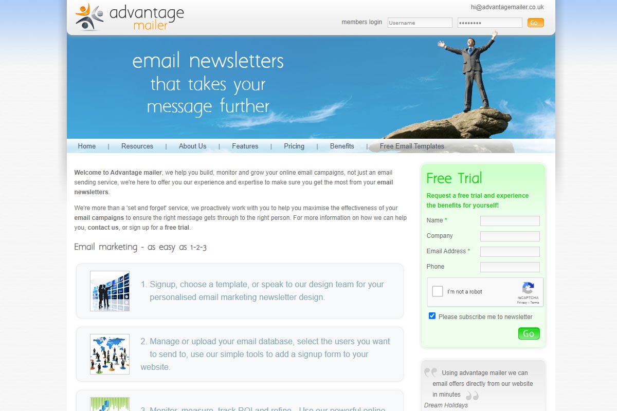 Advantage Mailer are a SaaS based email marketing platform, the platform supports multiple clients and logins and provides a best-practise based method for clients to send email newsletters.