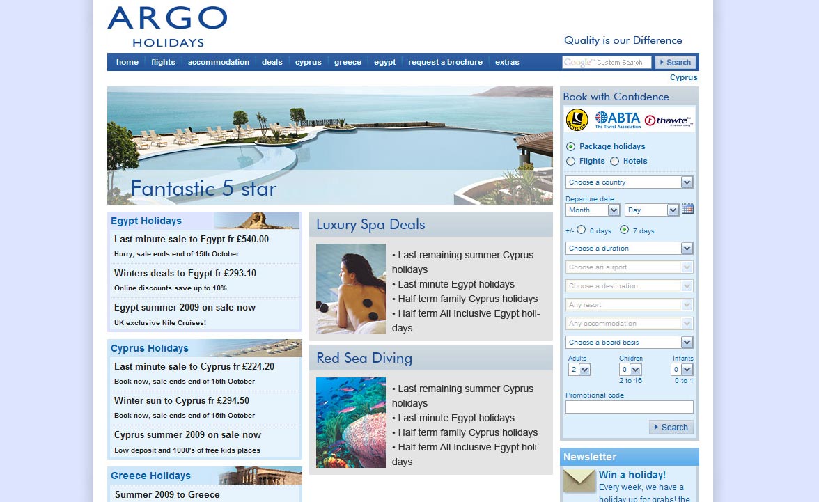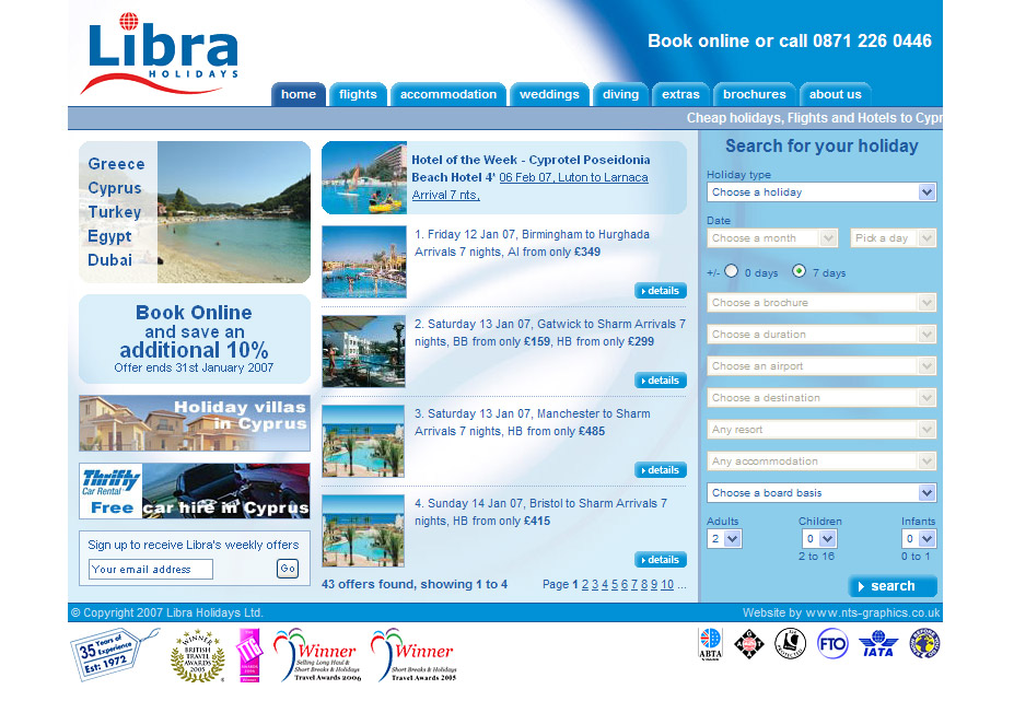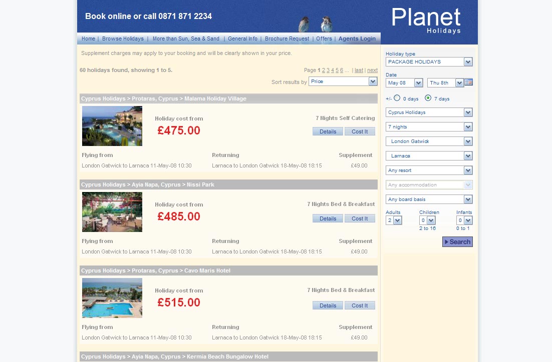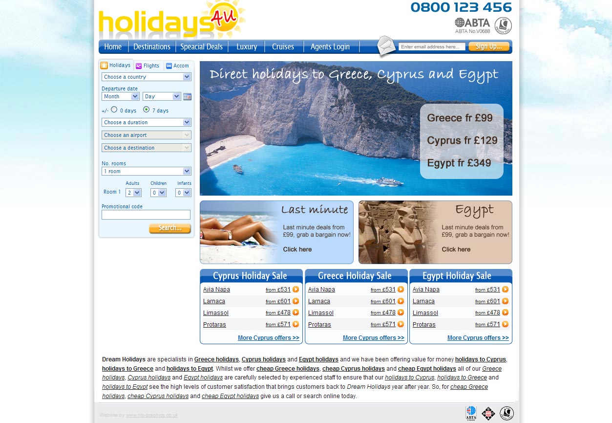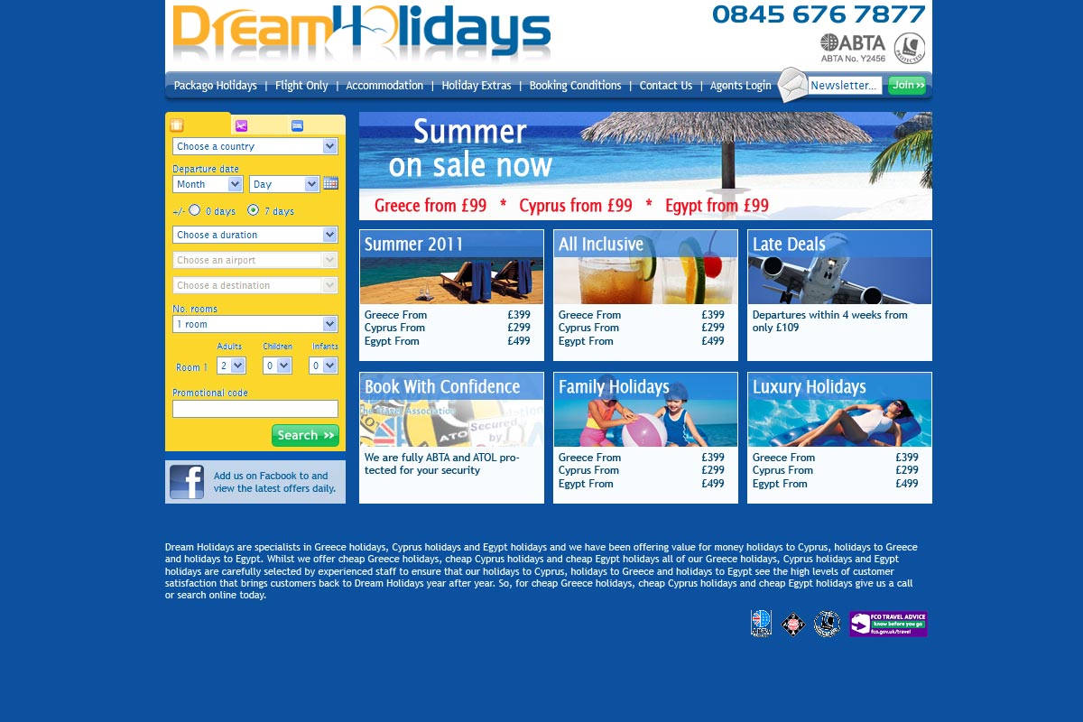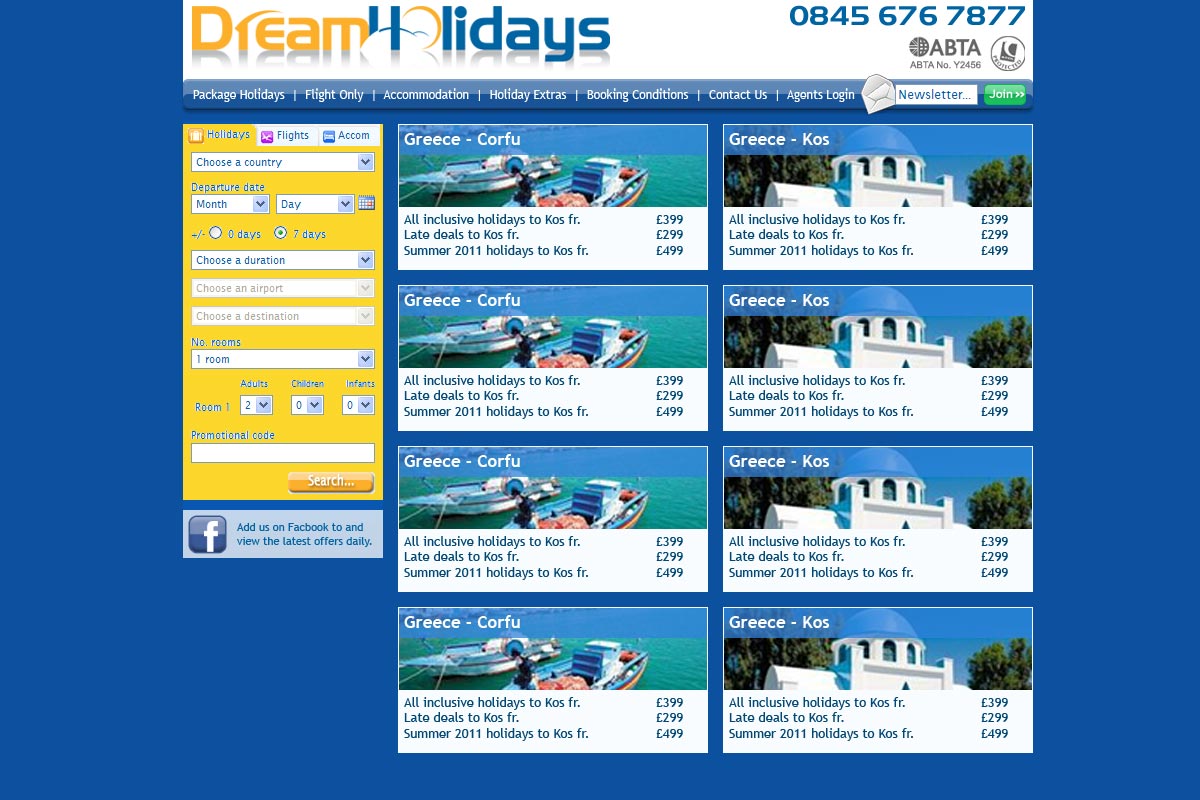 We were responsible for design, development, hosting, email marketing, SEO and maintenance of they companies key websites, we worked with the companies partners, including back office suppliers and payment providers to create fully interactive and customisable online holiday booking websites.