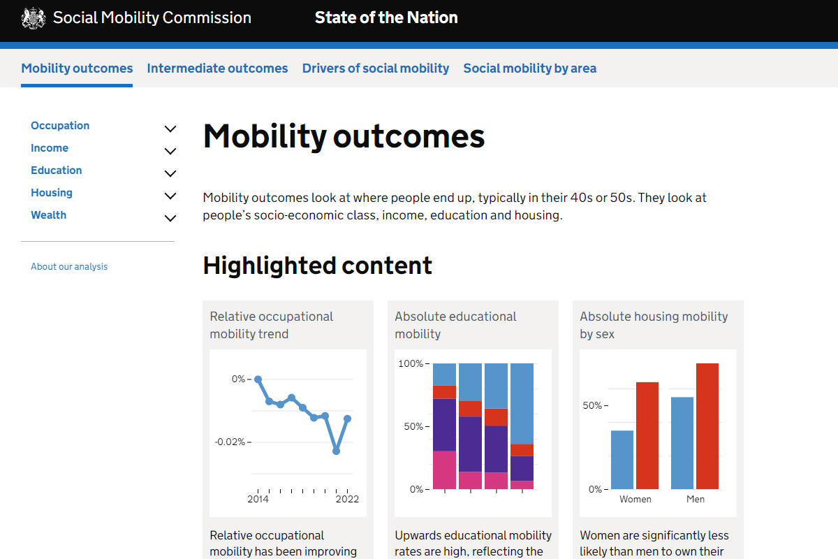 Working across Government, I worked to deliver the new Government gender recognition certificate service website, the Social Mobility Commissions' data explorer website and other smaller projects including custom reports for No.10.