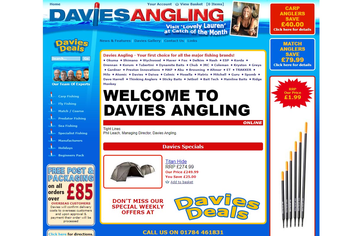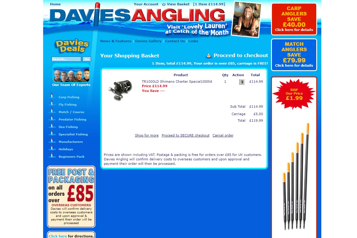 Davies Angling are a large UK based fishing equipment retailer. We created the businesses online web store, selling 1000's of items online.
