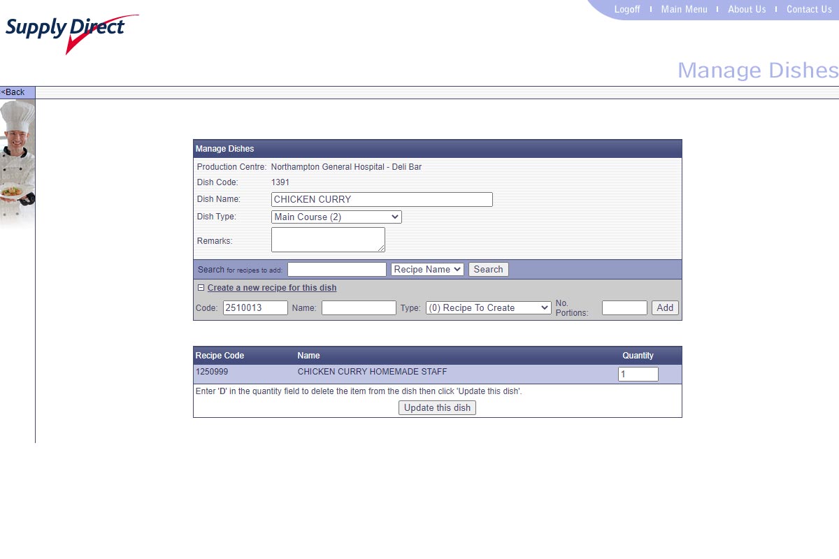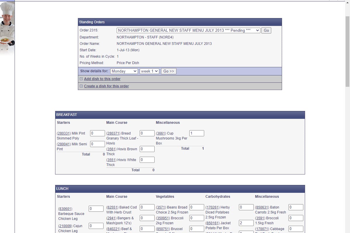 Interchef was an online catering management system developed for school's, hospitals and other large catering operations to help them manage their food production and ordering.